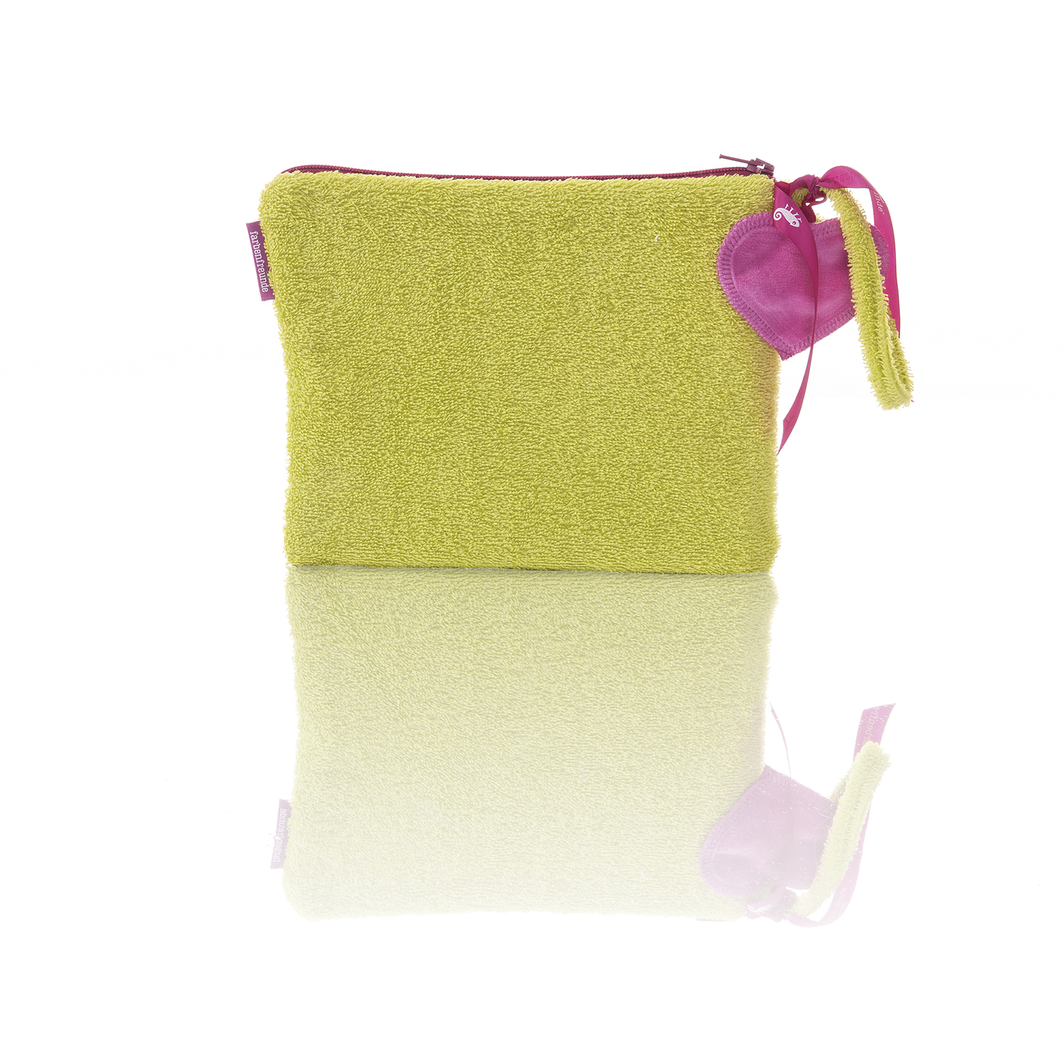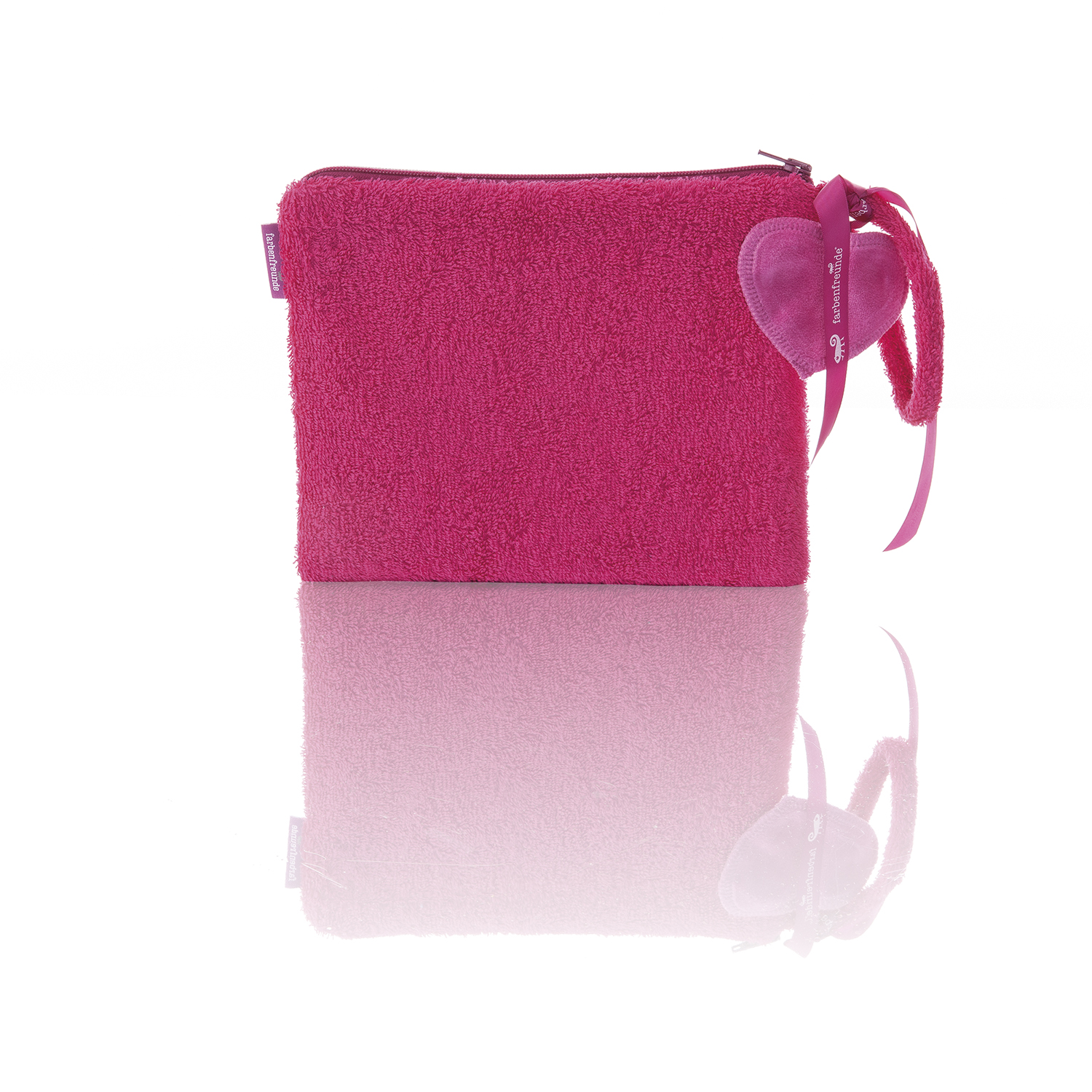 Diese Sommerversion der klassischen Clutch ist einfach superpraktisch und stylish! Einfach der perfekte Begleiter für jedes Sommeroutfit. Darin sind die wichtigsten Dinge verstaut, die Sie immer griffbereit haben möchten. Die Schlaufe sorgt für einen sicheren Sitz an Ihrem Handgelenk. Ein zusätzlicher Hingucker ist das kleine separat angebrachte fuchsiafarbene Herz aus Nicky. Die Tasche ist in zahlreichen Farbvariationen erhältlich und hat einen pinkfarbenen Reiverschluss. Gefüttert ist sie mit grauem abwaschbaren Nylon.